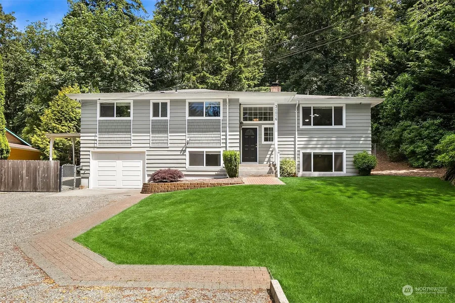 1st time on the market in 30+ years. This beautiful home has a large lot with over 1/2 acre of usable space. Huge front yard with mature landscaping and plenty of room for future shop. Attached carport with space for RV & boat parking. The back yard has a beautiful setting backing up to a protected watershed with miles of trails to enjoy. Gorgeous recently updated kitchen is perfect for entertaining. 3 large bedrooms upstairs including a primary suite with private bath and his and her closets. Stay comfortable year-round with a heat pump & A/C. Detached outbuilding- perfect for workshop or studio. The home is wired for a generator. Commuter's dream location; private yet a short distance to I5 & 167. No HOA.