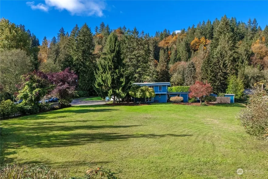 Check out this must-see, large, multi-generational home! Walk through the double doors into the spacious living room warmed up by the heart featuring two pellet stoves. Down the hallway you will find a formal dining room, kitchen and a family room. The main level also features a guest bedroom with its own bath and 2 more bedrooms. On the upper level is the primary en-suite featuring a wet bar. Step onto the 2nd floor deck overlooking the pool area. Enjoy those warm days in the pool, or cold nights in the hot tub. Enjoy the spacious yard on this 1+ acre property across from Cedar River. Great private setting, no CCRs and lots of flat parking.