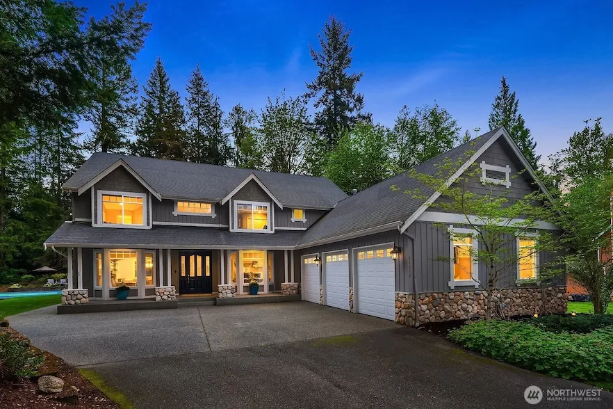 Experience luxury living in this 4-bedroom 3.25-bath 3,623 sq ft estate on a private 1+ acre lot at the end of a cul-de-sac. Inside, discover a newly renovated gourmet kitchen w/ a walk-in pantry, hardwood floors, a dedicated office (potential 5th bedroom), & 3/4 bath on the main. Primary suite w/ a spa-like 5-piece bath & a walk-in closet. Additional highlights include dual staircases, bonus room, new carpet, wet bar, tankless water heater, & new HVAC & A/C. Outside, enjoy a sport court, RV parking, & garden space, plus generator hook-ups, hot tub, & gas grill perfect for outdoor entertaining. Expansive 986 sq ft 3-car garage w/ overhead storage provides ample space. NO HOA/CC&Rs. Top-rated Lake Washington Schools, close to Redmond Ridge!