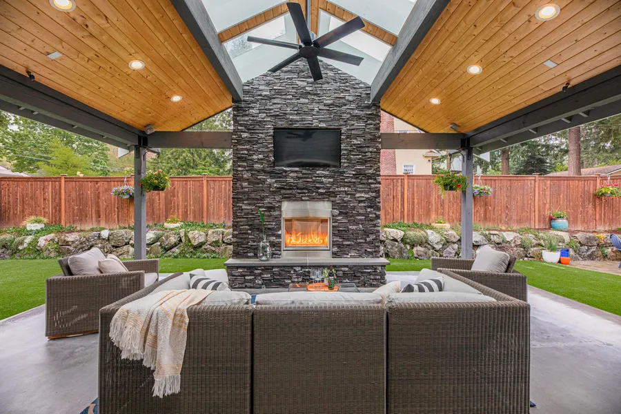 Nearly new, complete custom, high-end design & finishes. Luxury throughout incl vaulted ceilings, oversized sliding doors connecting the grand family room to the covered outdoor space w/skylights, gas stone fireplace, built-in TV, fenced turf yard & play space. The gourmet kitchen boasts a heated quartz island, gas & convection ovens, walk-in pantry, pot filler, extra storage & more. The main-level primary suite oasis w/French doors, vaulted ceilings, spa-like bath w/heated floors, oversized walk-in shower, soaking tub & huge walk-in closet. Upstairs offers a second en-suite bed/bath, spacious third bedroom, full bath & an oversized bonus room w/ 4th/5th bedroom potential. 3+ car garage is 26' deep w/12' ceilings, storage & more. MUCH more!