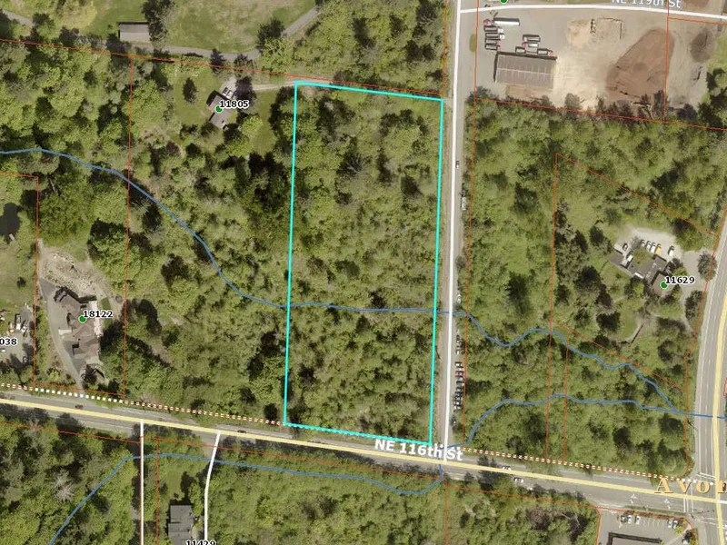 Research Parcel InformationFrom WA-502 E continue to Avondale Rd NE, turn L on NE 116th St, R on 184th Ave NE. Park off road. Property is on left and goes from 116th to the first drive on the L. NO SIGN YET!