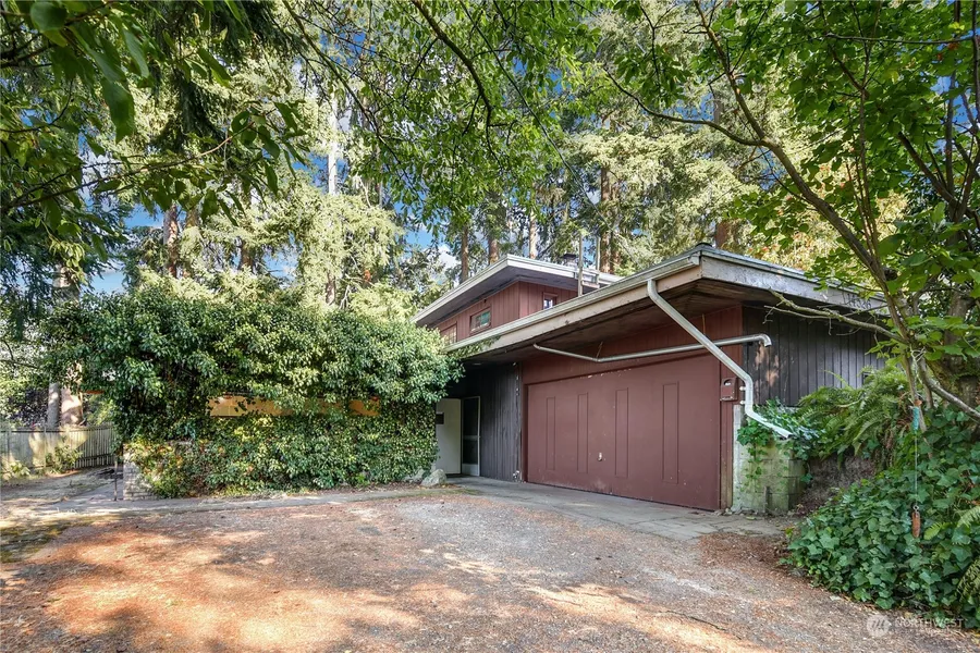 Check out this tri-level fixer with territorial view! Great Frank Lloyd Wright vibes with horizontal lines, big windows and concrete construction. The main floor features a large heatilator fireplace, living and dining room as well as the original kitchen and bathroom. Two bedrooms are upstairs. The primary bedroom and den with another heatilator fireplace are downstairs. The attached sunroom/greenhouse connects the family room to the garage. Mature trees, a quiet residential street and easy access to public transit options including RapidRide and a new light rail station. Perfect if you're seeking a special project home to make your own. R8 zoning gives you lots of possibilities. Parkwood Elementary, Einstein Middle, and Shorewood High.