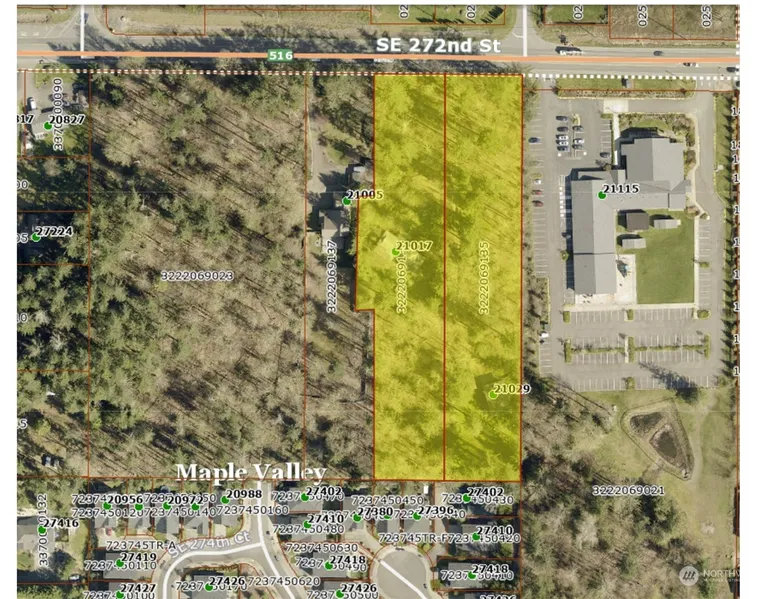 ATTENTION BUILDERS *** Wonderful opportunity to build up to 20 high-end homes on these 3.47 combined acres* Prime location with direct access off of SE 272nd St (Kent Kangley)* Next to Hope Fellowship Church* CITY OF MAPLE VALLEY ZONING R-6* Adjoining property is connected to Covington Water* Sewer access is 10 feet into 'The Reserve' neighborhood at the south end where the two properties meet* Gas & electricity are available* Property to be sold in conjunction with neighboring property (MLS # 2007037)* Fairly level grounds* Sunset views* Properties each currently have one home residing on them* Value is in the land*