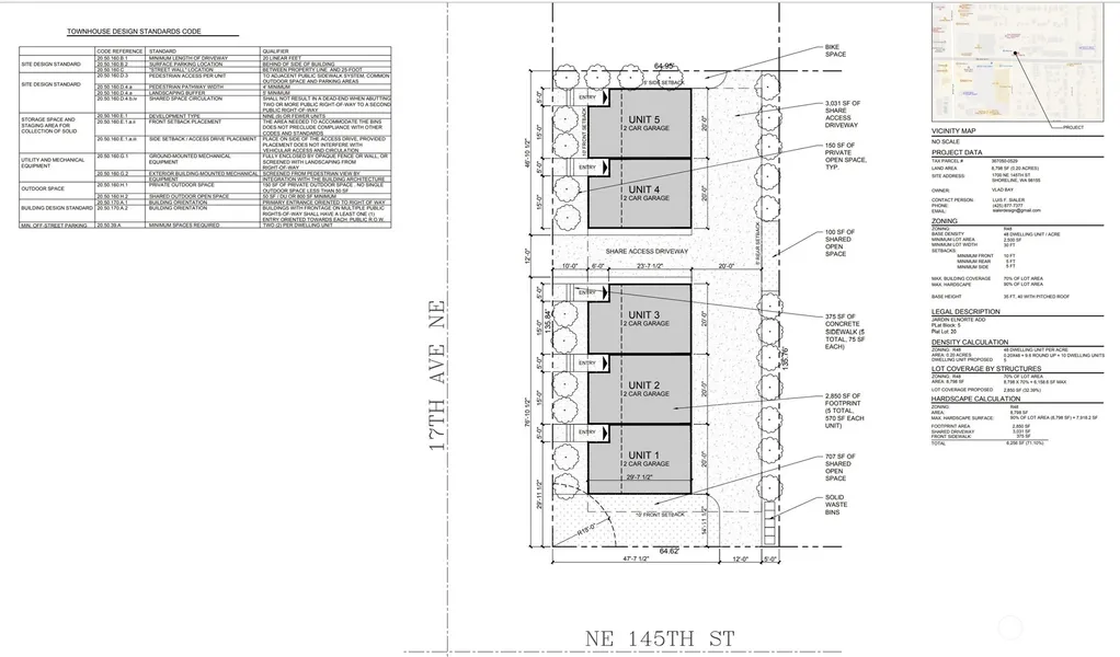 LAND available Close in! Perfect for: Attached/Detached Single Family homes or Apartments. This zone allows limited commercial activities (daycare, churches, some office) w/conditional use permits. R-48 zoning denotes 48/units acre can be built. We believe currently Shoreline may allow 5-6 townhomes access off 17th. This is a fabulous location close to the new (coming soon) light rail station. Shoreline School District. Maximum build out would be 10 dwelling units. Previously approved for 4-story build up. Existing home is a tear down. DO NOT ENTER! Buyer to verify all info with City.