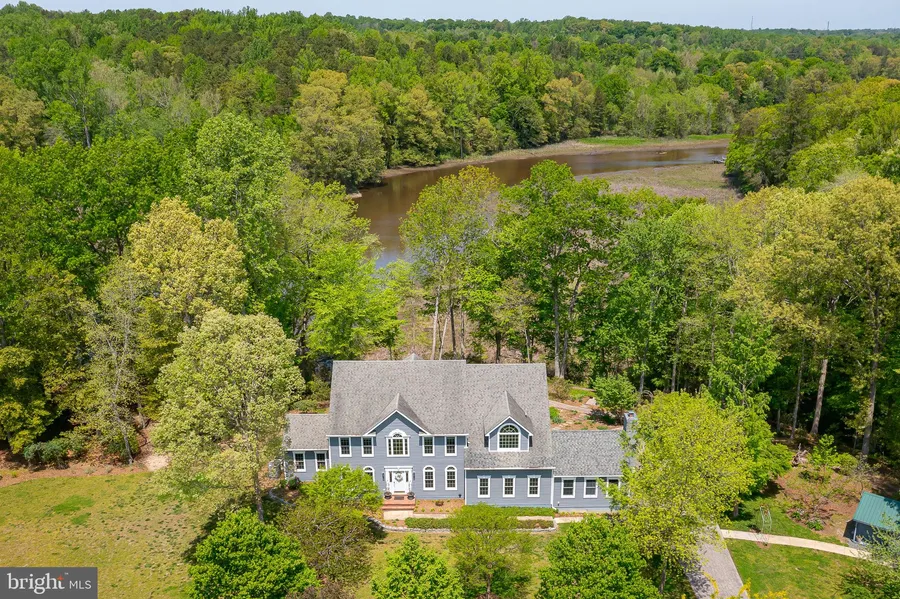 If you are looking for your own private retreat, this is for you! 11. 29 acres with over 1000 feet of water frontage. The Upper Machodoc Creek is perfect for fishing, canoeing, kayaking, paddle boarding or simply enjoying the unlimited surroundings of natures true beauty. The grounds that surround this amazingly designed custom home are breathtaking. This Four-bedroom colonial has 4628 square feet on three finished levels with top of the line finishes throughout. Some of the standout features include shadow boxing, cork flooring, one of kind views off the rear of the home, Palladian window off the family room, gorgeous all-season room with stone fireplace, beautiful hardwoods, gourmet kitchen, whole house generator, custom built ins, and much more. Large outbuilding with metal roof has a three-car garage, studio, ENDLESS indoor pool, sitting area with kitchenette, fireplace, and full b...