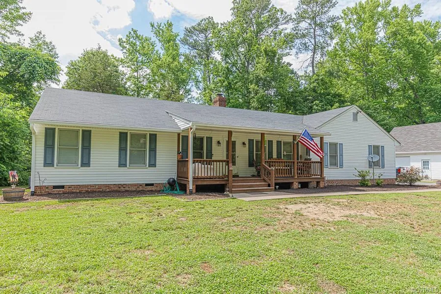 WoW!1 what an opportunity!! Your new home is a 3 bed, 2 bath ranch with country front porch on 3.2 Acres conveniently located in King William. The home boasts hardwood floors in living room and hallway. Ceramic floors in the kitchen and bathrooms. A master bedroom with en suite bath. 2 well appointed bedrooms and a hall bath. A huge bonus room with french doors, perfect for a man cave or family room. The exterior of the home offers a rear deck, park like wooded lot and maintenance free vinyl siding and gutter guards. A huge over sized 2 car detached garage with workshop!!
