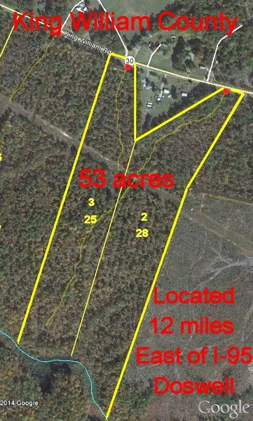 53 wooded acres on State Rt. 30. Twelve miles east of I-95 at Doswell. Convenient to both Richmond and Fredericksburg.