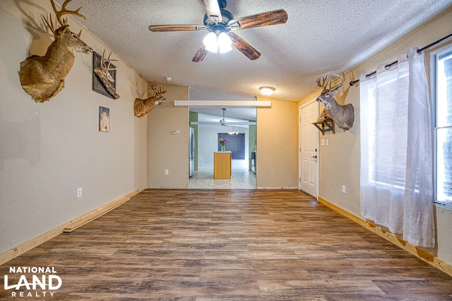 The home is surrounded by a fenced perimeter, while the remaining 9 acres of open pasture and small pond provide water access for livestock and plenty of space to make it your own. The property has a 50-year metal roof, brick skirting, and a strip slab foundation. With well water and all-electric utilities, you can expect low utility costs. Located off paved County Road 790, it’s just two miles down gravel road to the house.