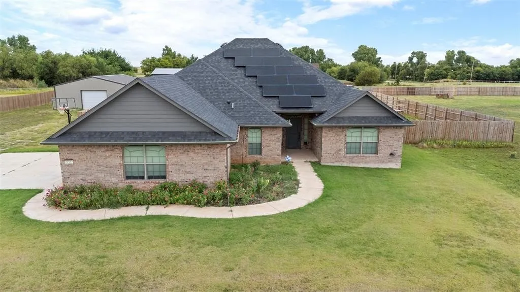 Enjoy the charm of country living without giving up city convenience. Built in 2023, this modern 4-bedroom home sits on a fully fenced acre in Cashion Estates. Offering peace, space, and privacy just a short drive from the metro. Inside, enjoy bright, open concept living, a spacious 3-car garage, and a smart layout featuring two bedrooms with private en-suite bathrooms. Custom cabinets in the BIG beautiful laundry room. Out back, an extended concrete patio is ready for BBQs, fire pits, or quiet evenings under the stars. The 30x40 shop (on slab, with a window) is perfect for hobbies, storage, or your next big idea. This is a short sale, making it a rare opportunity to own a nearly new home with solar panels. This is all electric home.