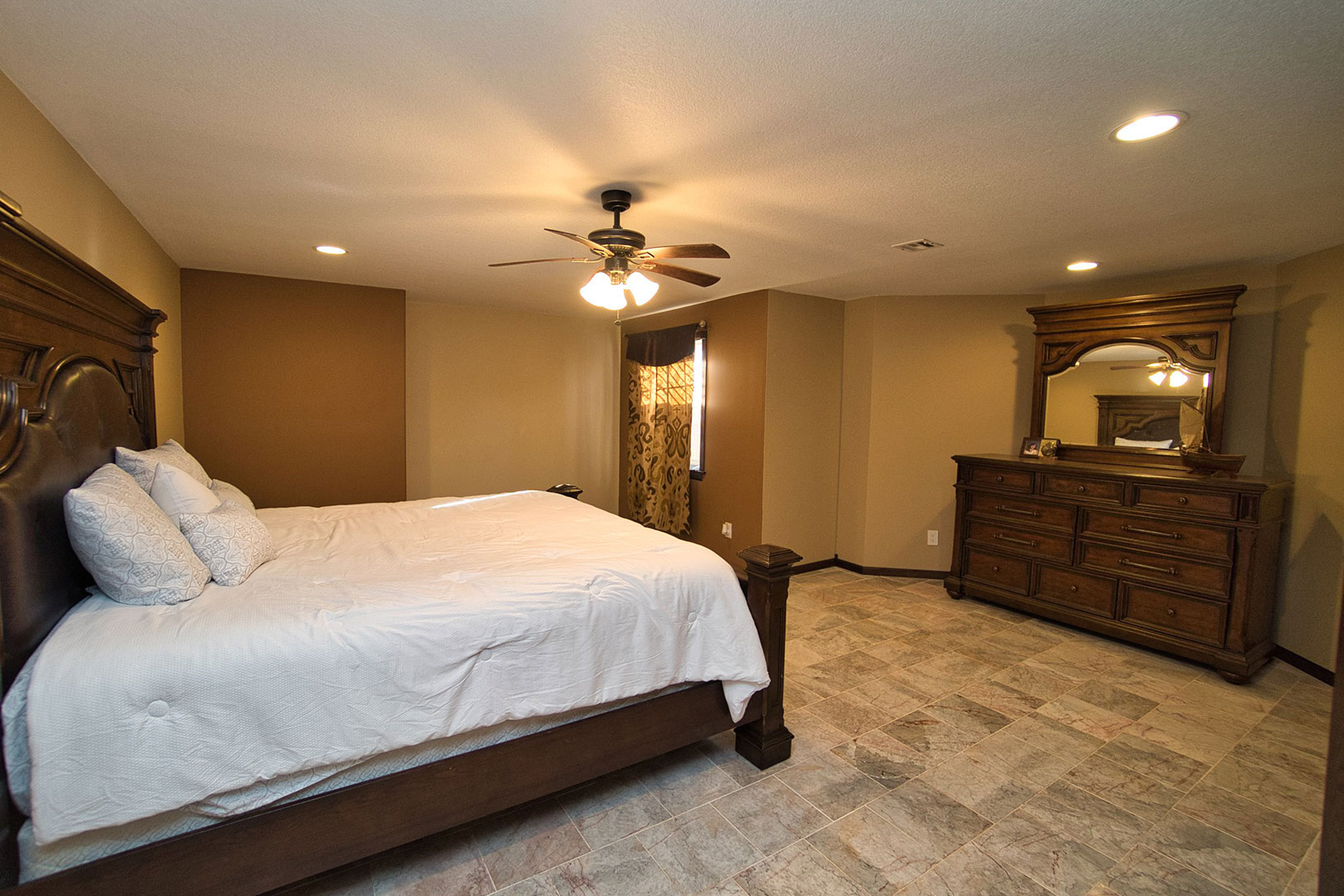 3 more additional bedrooms with one being a second primary bedroom or guest quarters with a full bathroom, walk-in closet and entrance to the garage