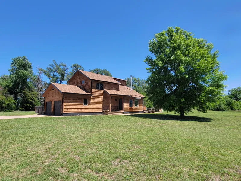This charming country home and small acreage property, off a blacktop, and located within 40 minutes of Wichita is just what you are looking for! You are going to fall in love with this warm and inviting home that features a cozy living room with a bay window, wood burning stove against a beautiful stone hearth, and vaulted ceiling. The eat-in kitchen is spacious and offers ample storage and counterspace, along with newer stainless steel appliances. The kitchen has sliding doors to the deck, to make outdoor entertaining a breeze. The master bedroom is very spacious, has a large walk-thru closet, a beautifully crafted en-suite bath, and access to the deck. There is a remodeled half bath on the main floor as well as main floor laundry. The 2nd floor area is home to another remodeled full bath, spacious bonus room, and bedroom. The partial basement is finished out as a conforming bedroom and mechanical room. Start your day outside on the deck reading a book with a cup of coffee and enjoying the sunrise. As the day warms up take a swim in the saltwater pool or just lounge poolside while the kids and furbabies play. Come evening do a little entertaining with friends on the deck, soak in the hot tub, or take in a stunning Kansas sunset. WHAT A WAY TO ENJOY A LITTLE BIT OF COUNTRY! Theres also a 30x40 shed with concrete floor and a 12x16 shed that can be used as a pool shed, hobby shed, kids playhouse or anything else you want to use that space to create. This home has 2 HVAC systems, 1 updated in 2019 and the other in 2023.