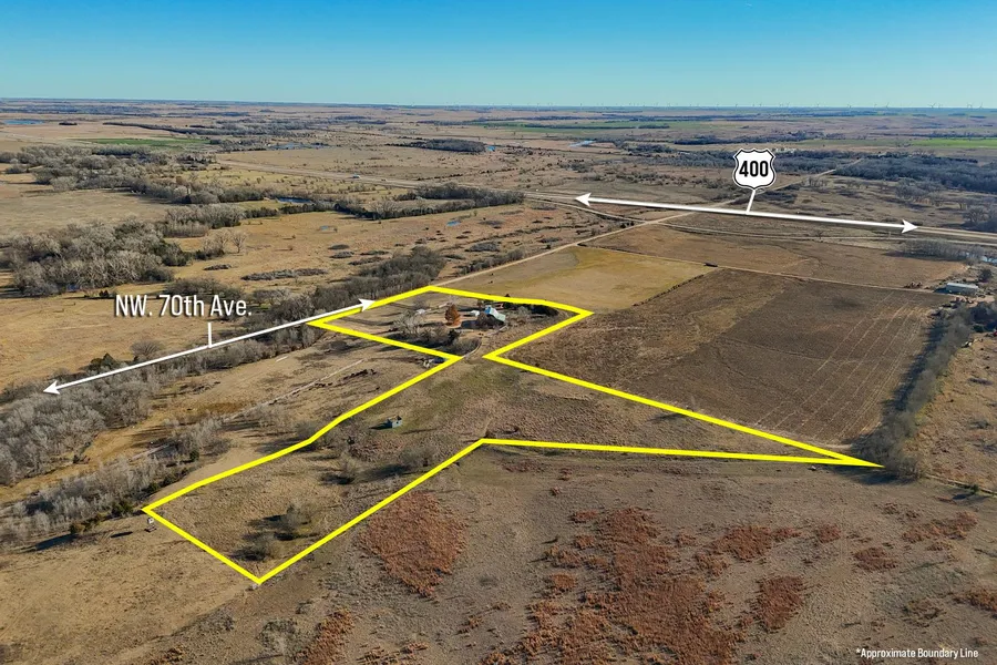 Are you looking for a home with acreage in the country? This is it! This is an amazing opportunity to purchase a thoughtfully designed andwell-cared-for one-owner home on 11.5+/- acres just west of Kingman, less than a mile north of Highway 400. This 3-bedroom, 3-bathroom home is not only spacious with an open floor plan and large rooms but was designed with efficiency in mind. The homefeatures a large front porch to sit back and enjoy those Kansas mornings and evenings. Inside is a large open kitchen with updatedappliances, large living/dining areas, a fireplace, a master with ensuite, and a walk-in closet. Two bedrooms, a bathroom with a soakingtub, and an off-garage laundry/mud room with a bathroom complete the home. As you drive up to the property you will notice thebeautiful surroundings, the gentle roll of the land, and the impressive 45x60 barn. The barn features a large gambrel roof, concrete floors, electricity, a mezzanine with hideaway stairs, overhead, and sliding doors. A lean-to is also on the side with 4 stall doors that lead tomultiple corrals and shelters around the property. A fenced alleyway runs to an additional 6+/- acres of pasture located in the northwestcorner of the property. If you are looking for that perfect homestead where you can unwind and have your slice of Kansas countrysidebut still be close to the amenities, this is it! With the acreage, large efficient home, and barn you are presented with countlessopportunities. Dont miss this opportunity and schedule a showing today! Taxes on the individual parcels will be estimated at closing asfinal amounts will not be available until such time as the lot split is finalized. *Buyer should verify school assignments as they are subjectto change. All information is deemed reliable but not guaranteed.