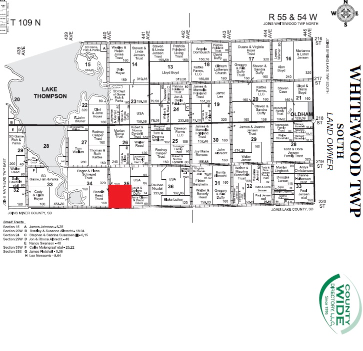 Research Parcel InformationFrom Oldham SD, 5 miles west on oil road 218th St. & 1.5 miles south on 440th Ave., or approx. 1 mile SE of Lake Thompson