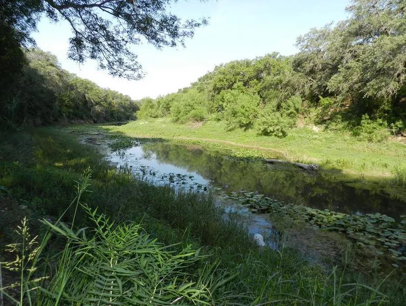 DESCRIPTION: A great combination of good protein deer brush with a variety of hardwoods such as Mesquite, Hackberry, and large Oak trees especially along Pinto Creek. There is a very nice stretch of Pinto Creek estimated to be 600 - 800 feet and has water year round under normal rainfall conditions. There are two cabins with electricity nestled among a large group of enormous Live Oaks overlooking Pinto creek. There is one neighbor that drives through northwest end of the ranch. This ranch also has Elm creek going through it which is a seasonal creek but has a large lake site with an old dam that could be repaired. There is excellent soils and grasses and an approximately 172+/- acre irrigated farm/field that is currently being farmed with cotton but could easily be converted into a food plot for deer. There is an artesian flowing water well that according to the owner is capable of 1,000 gallons per minute and is estimated by the owner to be 1,700+/- feet deep. This Artesian water well is located next to the 172 acre field and is currently used to irrigate the field. The current owner has a permit from Kinney County Groundwater Conservation District to use 304 acre feet of Edwards Trinity Aquifer Groundwater per year for irrigation purposes for the 172+/- acre farm/field.