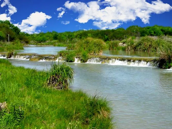 Water: One of the most outstanding features of the ranch is provided by 3 miles of year round Pinto Creek, which flows through the property year round. There are two concrete dams built on the creek for swimming and lake enjoyments and plenty of room for more water development. Along the 3 miles of water, you will find majestic rock bluffs, running rapids, natural waterfalls, and outstanding fishing for largemouth bass and catfish. The water is very clear and has a substantial year round flow. Along the entire 3 miles of creek, you will find giant pecan and live oak trees. In addition to the creek, there are 4 domestic water wells on the ranch and an elaborate watering system, which provides water for the wildlife and cattle. In addition, there are 5 big irrigation wells which flow artesian water. These wells could be used for irrigation or lake enhancement.
