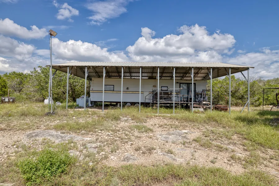 This property is turnkey, with everything you need to get away from it all! There's a furnished RV with a pole barn cover and large porch and a shared well and shared electricity, and a carport. Leona Ranch is located roughly 14 miles north of Brackettville, Tx. off Highway 674. It's a 4 miles drive off Hwy 674 to the land. The private roads within the subdivision are caliche roads. The ranch is on the southern edge of the Edwards Plateau, known throughout Texas for its abundance of whitetail deer, turkey and more recently free-range exotics. There are significant elevation changes creating multiple high locations with long range scenic views as well as several large canyons making the terrain rugged and scenic at the same time. Vegetation on the ranch is primarily live oak and cedar with a mixture of Edwards Plateau and South Texas brush. In addition to the abundant deer population found on the ranch, hunters will find Rio Grande turkey, feral hogs, quail, doves and free-range exotics such as Axis and Aoudads.