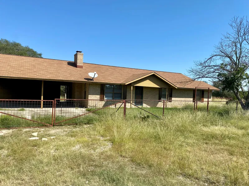 Discover 125 breathtaking acres just 30 minutes from Camp Wood, Texas, off CR 334. This property offers privacy and tranquility with a secure, private gate entrance leading to a charming 3-bedroom, 2-bath home spanning 1,696 square feet. Covered parking and storage building