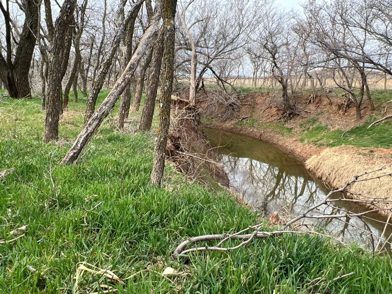 Welcome to your own piece of sportsman's paradise. Located two miles East of Lake Lugert in Kiowa County, OK sits this 320 acre tract that holds large whitetail deer, waves of Canadian geese, and occasional visits from wild hogs. The east side of the property has approximately 137 acres (according to FSA) of mostly flat cropland with Class 2 soils that are mostly 0-1% slope. This farmland is accompanied by a full 1/2 mile of Tepee Creek with moderate to thick cover along both sides of the running water, providing a great hideout for deer. A 60'x60' machine shed with all weather access is located along the east side of the property. The west side of the property is mostly grass and mesquite that offers plenty of additional cover for those large deer to hide. A small seasonal/runoff creek winds through the the mesquites and serving 3 small ponds/tanks. You will not be disappointed with t...