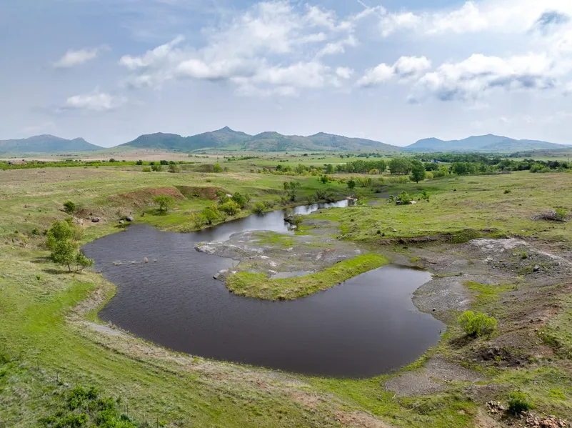 Introducing the Buffalo Dream Ranch, a premier western Oklahoma property situated at the western foothills of the Wichita Mountains. You will not find another property on the market that offers as much as this place! This property features 80 +/- acres of some of the most beautiful and unique landscape in all of Oklahoma. Boggy Hollow Creek runs right through the center of the property with rolling pastures of lush native grass dotted with gabbro and blackish granite boulders to the south of the creek and high creek banks overlooking several clear ponds and more rolling hills of grass pasture on the north side of the creek. The actual creek itself is a true gem all its own. The clear, cold water trickles through, over and around black granite slabs and boulders coming to rest in the many naturally dammed pools along its winding path. Willows, cedars and other trees line the banks and see...
