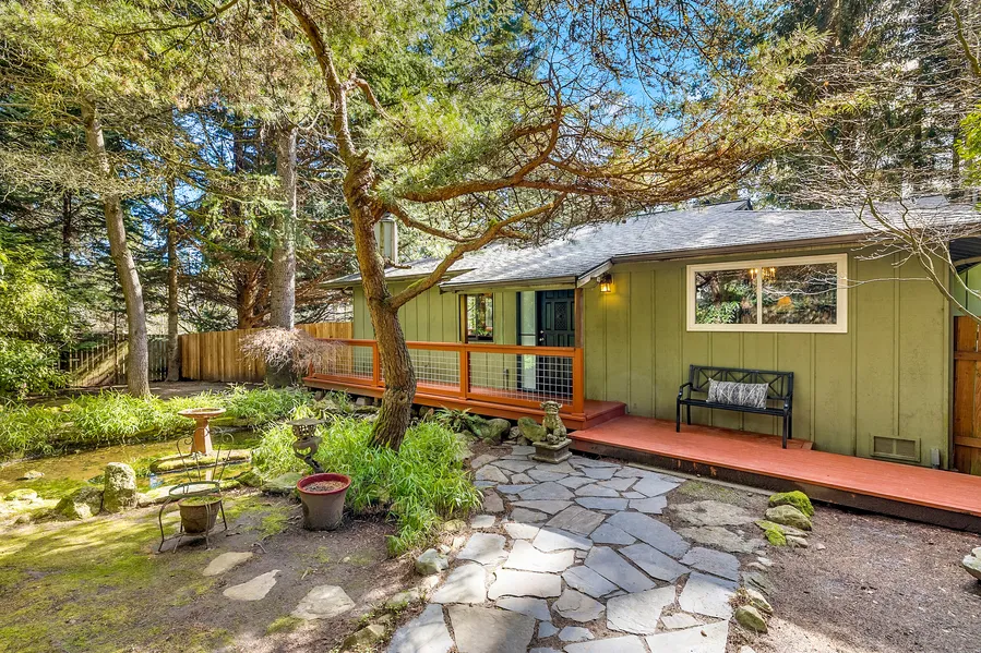 Eclectic NW style has transformed this traditional tri-level floor plan into something that's one of a kind. Designer colors & lighting are accented by beautiful fir detailing & doors, along with cherry cabinets, vaulted wood ceilings and a stunning main floor bath. The combination exudes warmth & character that's unmatched at this price. Versatile layout with main level living & dining areas plus a bedroom/den. Lower level bonus suite with adjacent bedroom, half bath and utility room features outside access, making it ideal for a home office/studio or a media/rec room. Just minutes to ferry, town & schools, the private 1 acre setting features a large partially fenced yard, deck, entry courtyard and plenty of space for pets & gardening.