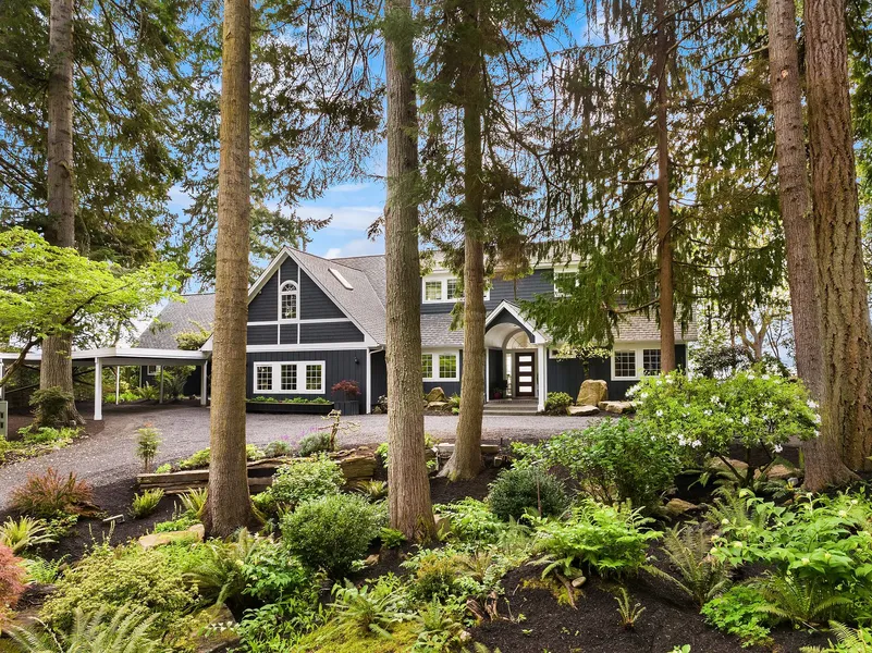 A signature Pacific Northwest setting of towering evergreens and native plantings set upon 1.8 private acres comes together in a thoughtfully remodeled residence with new interiors and major exterior improvementsall oriented with spectacular views from almost every room. Round the circular drive and open the door to airy, white interiors that draw the eye to the water.