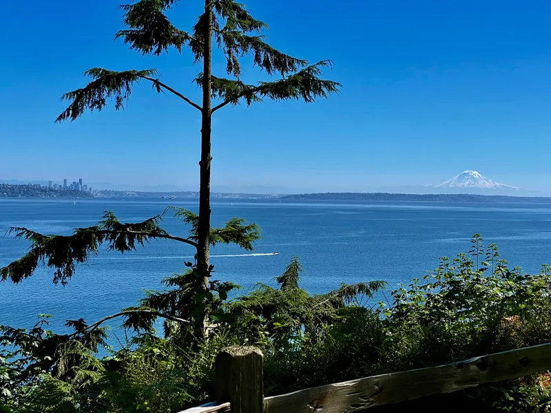 Welcome to 12898 and 12870 Sunrise Drive NE, a Private 1.5 Acre Waterfront Retreat with two beautiful Homes, a Mid-Century Modern and early 20th Century Cottage, set on 150 of high-bank shoreline. The grounds, with colorful terraced gardens, lawns, Douglas Firs and winding pathways are framed by awe-inspiring views of the Cascades, the Seattle skyline and Mount Rainier. The two-bedroom Mid-Century Contemporary (12898) is graced with vaulted cedar and pine ceilings, 3/4-inch oak floors, heat pump heating/cooling, a private study, and a living room with wood burning fireplace insert and a slider to the water/garden view deck, perfect for indoor/outdoor dining and entertaining. The bright, spacious kitchen has a large skylight for natural light; soapstone counters, Australian Lace wood cabinets, double Fisher & Paykel oven, two-drawer F&P dishwasher, Sub Zero fridge, a six-burner range, bre...