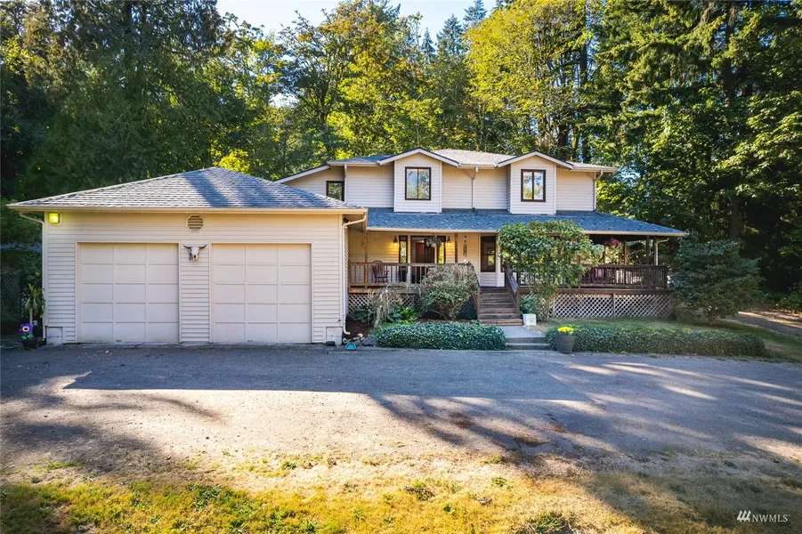 Gorgeous NW contemporary on a private lot with space for everyone. Main home features an incredible wrap around deck on 3 sides, vaulted ceilings, a/c and updated flooring. The expansive kitchen is an entertainer's dream. The detached ADU affords single floor living with 1020 SF, bedroom and 3/4 bath. Additional space in the enclosed sunroom for crafts, play, work or work out. Attached garage and carport are both oversized and can accommodate anything you need to store including an RV. The whole-house generator stays. There's even a cute building in the back that can be used as a playhouse or studio. This home is a must-see with nearly 2 acres, less than 2 miles from the Southworth fast ferry to downtown Seattle. Just a 25 minute ride.
