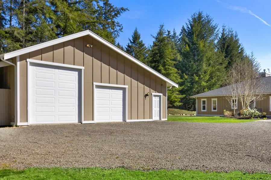 A true Total Package Property just listed in Poulsbo! This mint condition rambler was built in 2016 by one of Kitsap's finest homebuilders as their own personal residence and sits on 3.5 peaceful, pretty, and entirely private sun drenched acres. The home's sunlit open layout features a stunning Great Room w/ beautiful built-ins, gas fireplace, and Chef's kitchen w/ huge island, granite counters, designer tile backsplash & S/S appliances. Luxurious primary bedroom w/ spa like bath & custom walk-in-closet. Supersized guest bedroom & bonus room share a 3/4 bath. Dreamy laundry/mud room and double office. 9' ceilings throughout! Versatile professional shop building currently used as a home gym and game room. Full size RV garage w/ roll up door.