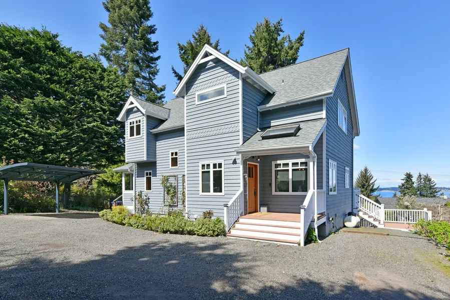 This stunning home boasts breathtaking views of the Cascade Mountains and Puget Sound. The open living area is framed by large windows that allow natural light to flood the space. The kitchen is perfect for hosting and features high-end appliances, ample counter space, and storage. There's an electric car charging station and RV parking w/ 20AMP power for those who love to travel. The large lot provides plenty of space for outdoor activities, it's a short walk to Fay Bainbridge Park, and the views can be enjoyed from nearly every room in the house. This home has modern amenities, a beautiful setting, and plenty of space to enjoy it all.