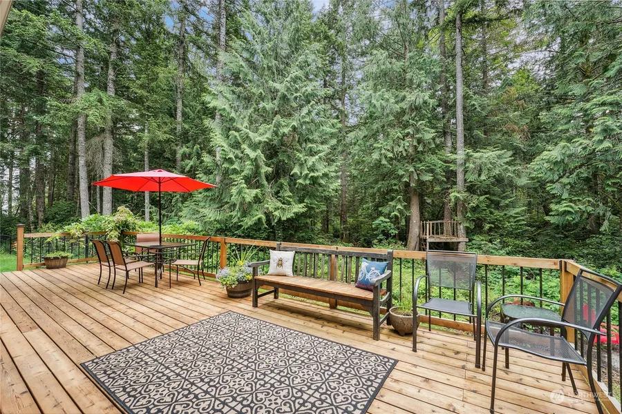Private, renovated home on 1.6 acres in gorgeous Old Sawmill, is a perfect retreat. Renovations include new kitchen and baths, paint, and decking/rails outside. Fabulous kitchen with new custom cabinets, farm sink and a Pinterest worthy, built in pantry/coffee station! Gorgeous tile in new baths; huge primary bath with shower and soaking tub. Roof newer. Home is tucked away in a neighborhood of larger homes, with fenced level side yard. Woods are a quiet buffer in the back; fun for exploring! Expansive back deck is great for entertaining, plus side patio and firepit. Great central location between Silverdale and Bremerton-- close to bases, ferries, beaches, trails and amenities; yet feels worlds away. Perfect NW living!