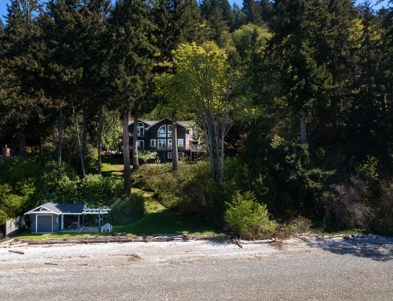 Welcome to Bainbridge Island’s Sunny Gold Coast and this secluded estate property comprised of two waterfront lots with 125 feet of sandy shoreline. With a walk-out beach, a boathouse for the toys, and full western exposure, you’ll never want to leave the beach. The home exudes many charms, featuring a sunny great room design with loft, and a wall of windows embracing the alluring water views. Two primary suites ensure convenience and privacy for residents and guests alike. The tidy kitchen, large deck, and ample storage further add to the functionality and enjoyment of the home. Adjacent to Gazzam Lake Preserve. Come for the sand and sun, stay for the warm atmosphere. This is truly a place where great memories are made.