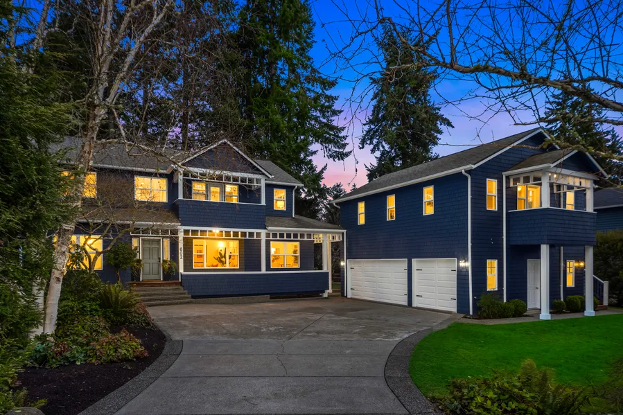 Ideally located on charming Alder Ave, this four bedroom home with separate 720sq ft ADU (not included in sq footage) is ready for new memories to be made. The main house has four bedrooms, formal living and dining, primary suite with balcony, comfortable eating space off the kitchen and a family room with a cozy wood burning fireplace. Above the three car garage is a private entry, one bedroom ADU with full kitchen, full bath and a west facing balcony off the sunny living room. Beautifully landscaped perennial gardens that will bloom all spring and summer. The private side yard is bright and sunny, a perfect spot to play all day and relax into the evening. In the Wing Point neighborhood, close to Winslow, the ferry and Hawley Cove Park.