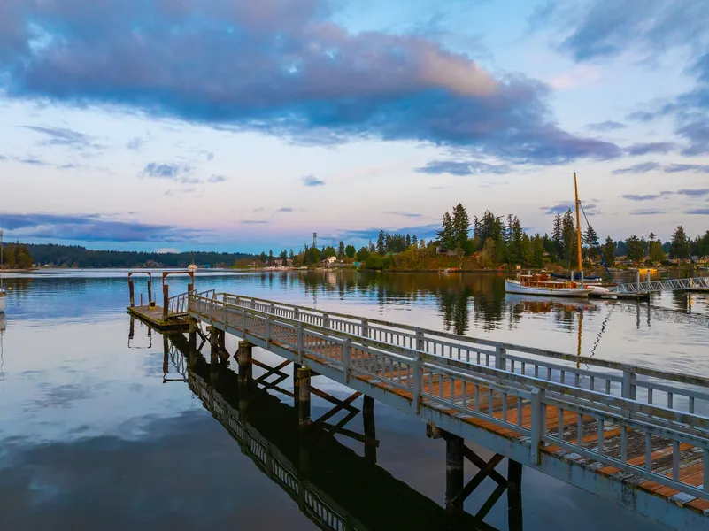 Rare, deep water moorage on Liberty Bay in beautiful Poulsbo, WA. This stunning property boasts breathtaking water views that can be enjoyed from most areas of the home. Situated on a spacious .52 acre lot with 90 feet of waterfront, this home offers plenty of outdoor space for entertaining. The detached 3 car garage/shop provides ample storage and the third bay/shop has 220 voltage. Whether you're dreaming of a full renovation or selective updates, the potential is unmatched. Nestled in a desirable neighborhood with mature landscaping and excellent bones, this is the perfect canvas to create your forever home. A little vision will go a long way! The deep water dock is perfect for launching your boat or paddleboard and exploring the bay!
