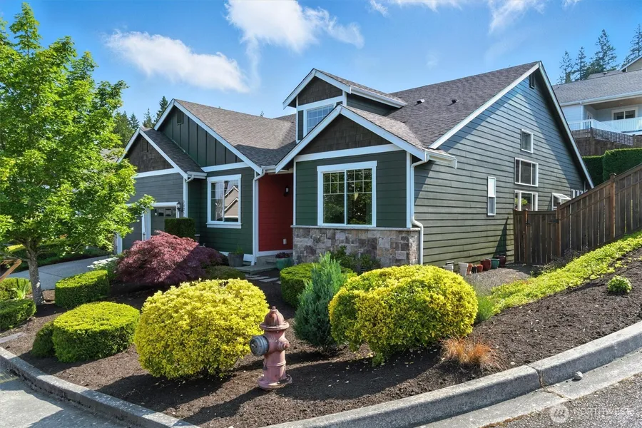 From the moment you step inside, you'll be greeted by soaring ceilings, abundant natural light & a layout that offers both comfort & versatility. This thoughtfully designed home features two spacious ensuite bedrooms, perfectly positioned on opposite ends for privacy & convenience. A third room at the front offers endless potential:home office,hobby space,guest retreat, addnl bedroom, the choice is yours. Open-concept living areas flow seamlessly, creating an ideal environment for everyday living&entertaining. Cozy gas FP. HP&whle hse generator. Outside, enjoy beautifully landscaped, low-maintenance gardens & relax on the custom paver patio under your retractable awning. 3 car tandem garage. Near schools,parks& historic downtown Poulsbo.