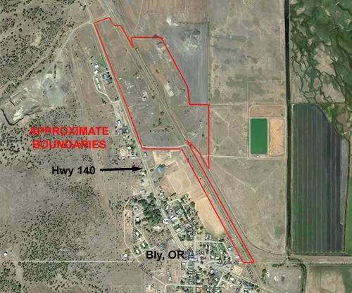 This is a unique opportunity! This 65.91 acre parcel is located on the outskirts of the City of Bly, Oregon and sewer, water, and power are available. It is cleared, level, and fenced. (Previously a Weyerhaeuser site, but has since been cleaned up). The property encompasses the "trailhead" of the Bly to Klamath Falls trail which was a railroad track before the track was abandoned and the rails removed and is now popular with cyclists and hikers. The parcel has many possible uses with approximately 52.65 Acres zoned RUC-1, and 13.26 acres are zoned EFU-C. There is about .4 miles of frontage on Hwy 140. Bly is located approximately halfway between Klamath Falls and Lakeview in southern Oregon.