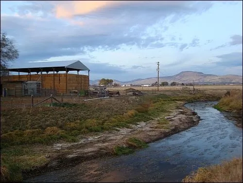 HOMEDALE & HENLEY RD 165.72 ACRES, KID irrigation on 159.55 acres. Fenced and cross-fenced, 45'x72' hay barn, treed building site with well alongside 3/4 mile of the #1 drain canal, a gathering place for waterfowl. Potatoes, grain & organic alfalfa with ground lease, 2 pumps & 4 wheel lines. Diversified economic potential; geothermal, next to Henley city annexation, railroad siding.