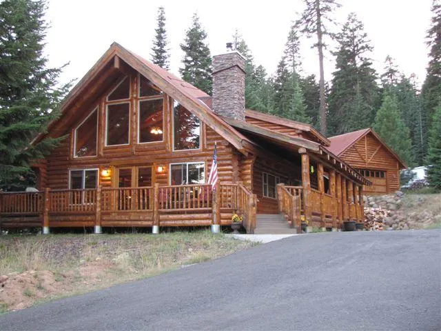 All furniture and washer/dryer available. This is a beautiful Homestead Log Home. Excellent construction with vaulted ceilings and massive log ridge pole. Includes large support logs with big kitchen and family room in a great room style. Lovely updates with Corian counters, 4" Hickory Plank flooring, tile floor bathrooms and large master bed and bath with jetted soaking tub.. Paved driveway and large detached garage. Surrounded by National Forest and easy walking distance from Pacific Crest Trail.