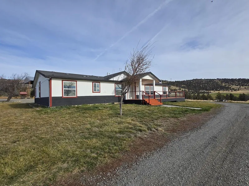 Irrigation Well!!! Privacy!!! Mt Shasta Views!!! 3-bedroom 2 bath triple wide on over 161 acres. Property is very private with beautiful views of Mt. Shasta. It has 2 pivots, 5-wheel lines, hay barn, and is fenced and cross fenced. Ground has been planted in alfalfa and most recently used as grazing. The home has over 2700 sq ft with an open concept and lots of room, beautiful acacia hardwood floors, large kitchen with butler's pantry, large island and granite counters. Both bathrooms have tiled walk in showers. New wrap around deck to enjoy the panoramic views. Also has a detached garage/shop, shipping container for storage and a play area.