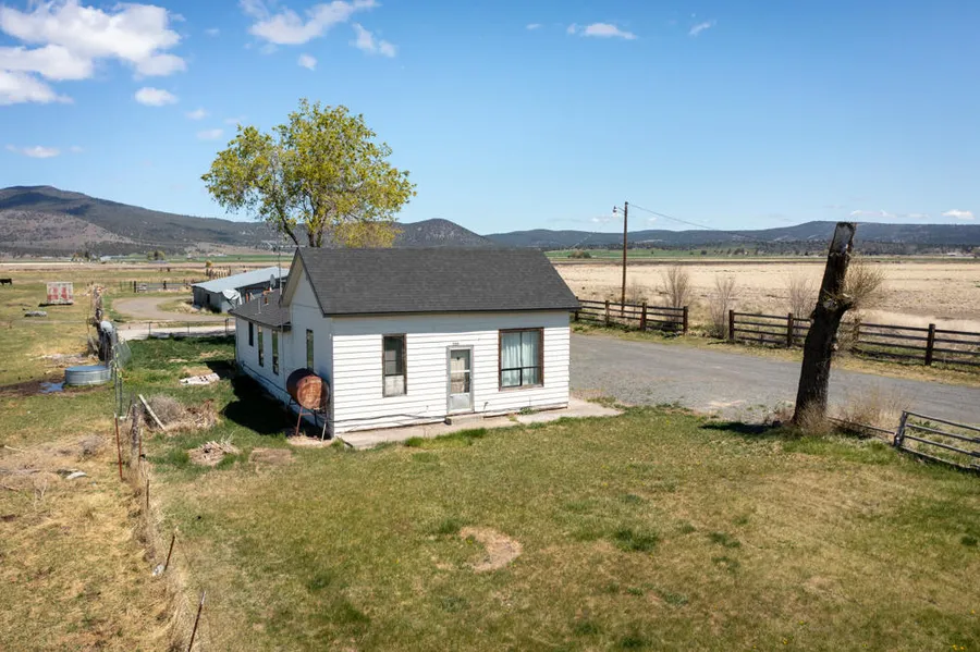 KID class A water on 28.05 acres of land with old farmhouse on the edge of Merrill in Southern Oregon, plus a GREAT mountain view. This property could be used for many different purposes, has potential for development and is fully fenced. Currently being used for grazing and is normally canal flood irrigated. Home is a classic farmhouse in need of some work, but has some updates including a newer septic system and wiring throughout the home. 2 bedrooms, with potential for 3rd, large formal dining with built in cabinets, separate laundry room and additional storage in the attic. Tall ceilings throughout and wood highlights all over. Outbuildings on the property include an equipment shed, tack storage and covered parking. The Northwest corner of the property is at the end of N 3rd adding an additional access point to the property for whatever the new buyer wishes to develop. Unique property and location that can be used many ways with tons of potential for farming and or development!