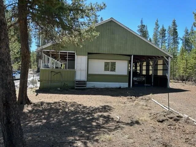 Located in Two Rivers North. This manufactured home has 2 bdrm. 2 bath, one on both ends with their own bathroom. It is covered by a huge snow roof which provides covered parking, tons of storage above or could possible be converted to a stick built home! The 40X48 shop/garage with an RV access door and a 13 ft. wide lean-to for extra parking. There is an extra 2 car garage/shop for workshop, storage or?? Hemlock creek just across the street-forestland access from all four corners of the subdivision. Willamette Pass Ski Resort, Pacific Crest Trail, Odell Lake, Crescent Lake, and numerous other Mtn. lakes nearby. quad, snowmobile, horseback ride, or just hike the many trails! Up & coming neighborhood with Fire department, convenience store, mail boxes, & storage units. Possible Owner terms with substantial down.