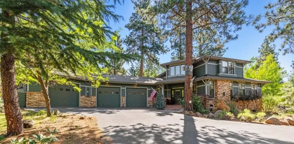 STYLISH HOME WITH 3-CAR GARAGE AT RUNNING Y RESORT! This custom 2005 home features a two-level foyer, white oak flooring, and a family room with a stacked-rock gas fireplace. The main level bedroom could double as an office or hobby room with adjacent full bath. Enjoy 9-foot ceilings, quality woodwork, an open great room, kitchen, and dining space, plus an oversized courtyard and covered side deck. The updated kitchen has new stainless Kitchen Aid appliances, wine fridge, black tile backsplash, granite counters, pull-out pantry, and glass-front cabinet lighting. The upper level features the primary suite, complete with dual sinks, a soaking tub, and a tile shower. Additionally, there is a second bedroom and a full bath on this floor. Please note the integrated laundry chute and the classic cast iron bathtub. Additional home features include dual heating and air units, custom plantat...
