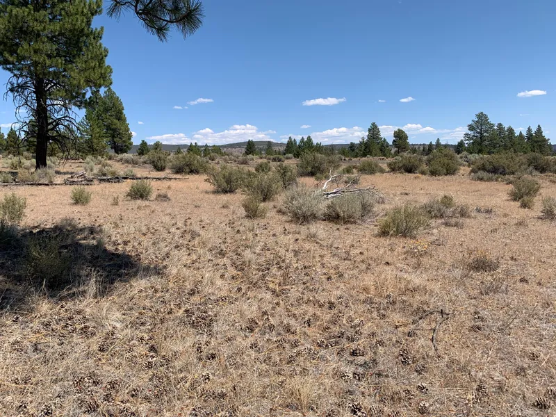 Terrain is relatively flat on top of the ridge to a rock outcropping ridge to the north. Soil is mixed loam and sand. Vegetation is sage brush, bitter brush, juniper and healthy pine trees.