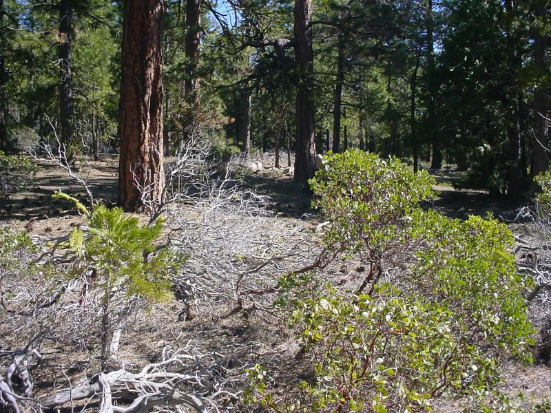 This is a nice lot with very nice trees. It has many pine trees with some Ponderosas. Very little brush and has some nice Manzanita bushes.