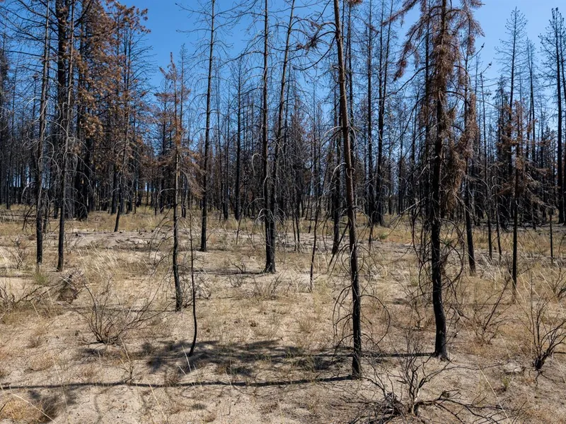 Our photographer stated, Access to the property was somewhat difficult. There is approximately 10 miles of unpaved road with the last 3 miles requiring a high clearance vehicle. The lot is fairly flat with a slight east to west slope. No overhead electrical lines or water connections noted in the area. Camping in the area would be possible, but building would be difficult for getting large equipment and supplies into the area. Most of the surrounding area has burnt trees from a wildfire last summer. There are a few structures nearby. The closest appears to be a seasonal cabin and a larger established home with farming equipment is approx 3 miles away. The cell phone signal was weak at the site.