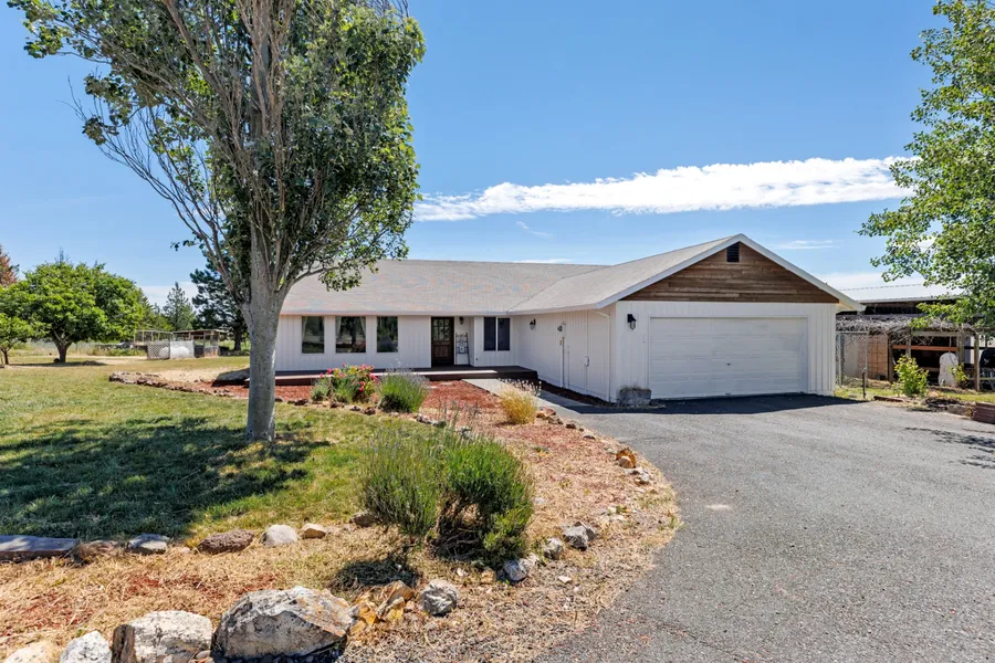 Thoughtfully updated ranch-style farmhouse on 21+ acres! Enjoy privacy with mature trees, fully fenced acreage, paved & gated entry with a circular driveway. Store your toys & projects in the detached 2-car shop, oversized carport + 2-car attached garage! The home features new siding, new paint & doors, wood casings, cedar deck, high efficiency mini split heating & cooling, updated lighting, life proof vinyl plank flooring, soft close cabinetry, butcher block countertops, quartz vanities & more!