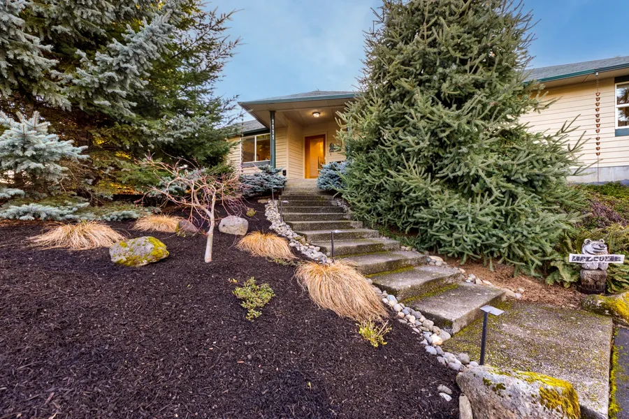 Enjoy tranquility as you enter this private home sitting on .66/acre with a beautifully manicured garden to enjoy an extension of the home’s finest amenities! The garden frames this 3200+ sq ft home offering space to work remote in the main-floor office or one of the 4-bedrooms. Enjoy views of Mt Hood in the vaulted ceiling great room, combining custom kitchen and dining features. The walk-up island allows for conversations in the functional and luxe kitchen. With never been used quartz countertops, Australian gum wood radiant floor heat, new stainless steel and built-in gas appliances and custom backsplash, this kitchen is ready to share with your family and friends! The primary suite sits on the main level offering wall-to-wall closets and organization. Don’t miss the ensuite with a double vanity, quartz countertops and new sinks and hardware. Bonus space, additional living or guest quarters in the renovated lower-level. With a separate entrance, kitchenette, private bathroom and washer and dryer, this space offers many opportunities to meet your needs! The 4-car tandem garage solidifies Gorge Living with room to store your recreational toys and vehicles! End your day back in the garden. With fruit trees, grape vines, a garden shed or art room, large patio for taking in the UV rays; this private sanctuary allows for rest and relaxation!