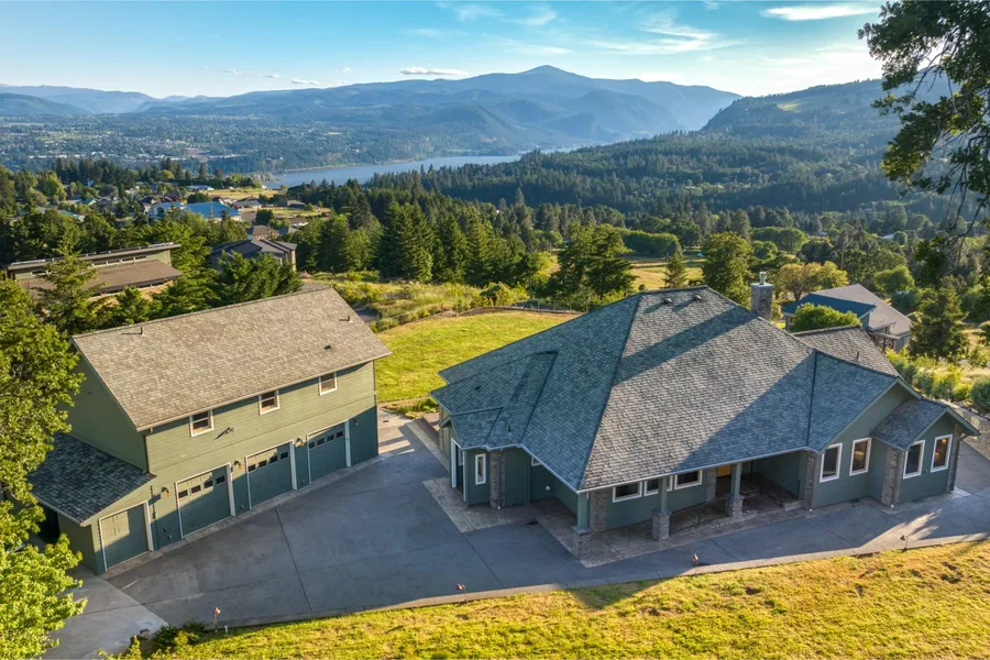 This exceptional property truly feels like the top of the world! Own a piece of paradise with expansive views that will leave you in awe every day. Perched on an acre of land, this home offers unobstructed and unrivaled vistas of Mount Hood, the Columbia River, Underwood Mountain, and frequent rainbows! ?? Step into the heart of the home, where entertaining is a delight in the gourmet kitchen. It features Blum German hardware, a gas range, and two dining areas, perfect for both casual meals and formal gatherings. The spacious great room is designed for comfort and style, with massively vaulted ceilings that create an airy, open ambiance. Throughout the home, you'll find beautiful maple wood floors and large windows that frame breathtaking views from every angle. The single-level layout boasts an open floor plan, ensuring a seamless flow between rooms. With 4 spacious bedrooms and 3.5 elegant bathrooms, there’s plenty of space A detached garage with 5 bays! Guest quarters above the garage & ample flat/paved parking. Outdoor living is at its finest here, with a sprawling lawn, a large outdoor patio for entertaining. The property offers the perfect balance of stunning views, privacy, and luxury. Experience one of the Columbia River Gorge's quintessential settings. Schedule a tour today to see this extraordinary property and discover luxury living at its finest!
