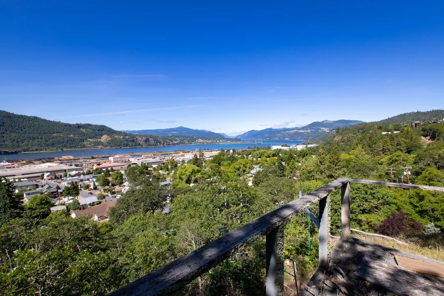 See video tour, breathtaking 180 views of the Columbia River from two buildable lots of 2.6 acres. Includes adjoining lot of 0.5 acres with 34x72 industrial steel shop, 12-14' ceilings, bank of windows with river views. Seismic graded pad w. 16ft anchors, lift door 11w x 10h out to roofed pad 19'x36'. Possibility to add a second story. 3 Heat pumps, 2 three-phase panels, 2 single phase panels, rustic WC, 2 sinks, water heater, pressure pump. Current home has no value. Buyer to do due diligence.