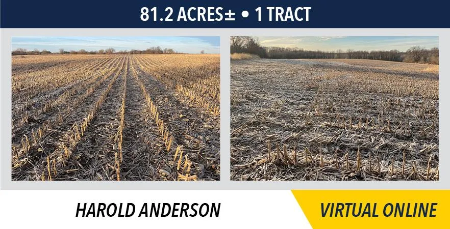 The Harold Anderson farm will be sold on a price per acre basis, based on surveyed acres.