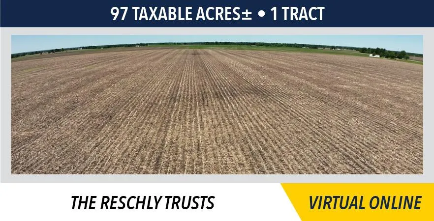 The Reschly farm will be sold on a price per acre basis, based on 97 taxable acres.